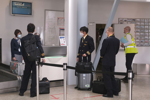 トゥールーズで搭乗前に手続きするANAのパイロット=21年10月15日 PHOTO: Yuriko NAKAO/Aviation Wire