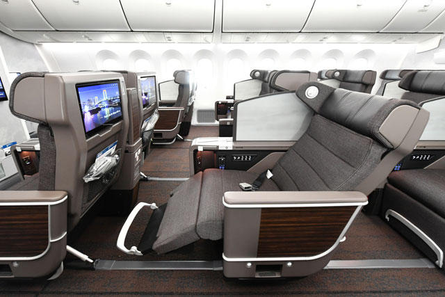 座席数は2クラス375席仕様で、プレミアムクラス28席、普通席347席。コンフィグ(客室仕様)は「78G」となる。従来の787-9の国内線機材は2クラス395席(プレミアムクラス18席、普通席377席)で、プレミアムクラスが10席増えた。全席に個人用画面と電源コンセント、充電用USB端子を備える。