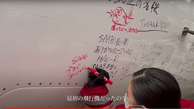 動画には客室乗務員やパイロット、整備士などが登場。それぞれがサーブ機の思い出を語り退役を惜しんだ。このほか、退役時の機体への寄せ書きの様子も収めた。