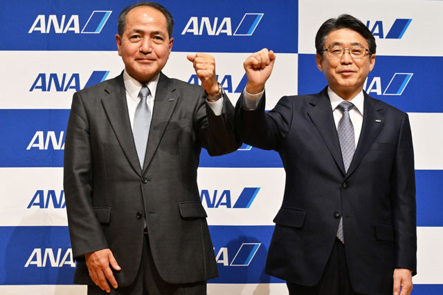 全日本空輸(ANA/NH)を傘下に持つANAホールディングス(ANAHD、9202)は2月10日、芝田浩二専務(64)が4月1日付で社長に昇格する人事を発表した。片野坂真哉社長(66)は代表権のある会長に就き、伊東信一郎会長(71)は特別顧問に退く。事業会社のANAも、傘下のLCCであるピーチ・アビエーション(APJ/MM)創業時にCEO(最高経営責任者)を務めた井上慎一専務(63)が4月1日付で社長に昇格し、平子裕志社長(64)はANAHDの副会長に就任する。