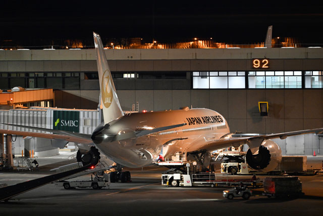 同機は国際線仕様機で、2クラス206席(ビジネス30席、エコノミー176席)のE03仕様。JL860便に投入後は、787で運航している成田発着の短距離国際線に投入する計画で、4月上旬までの運航になる見通し。