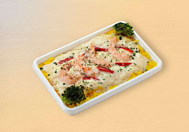 小田急百貨店の空弁大会で販売する冷凍機内食「エビの柚子胡椒クリームソース」(空ビル提供)