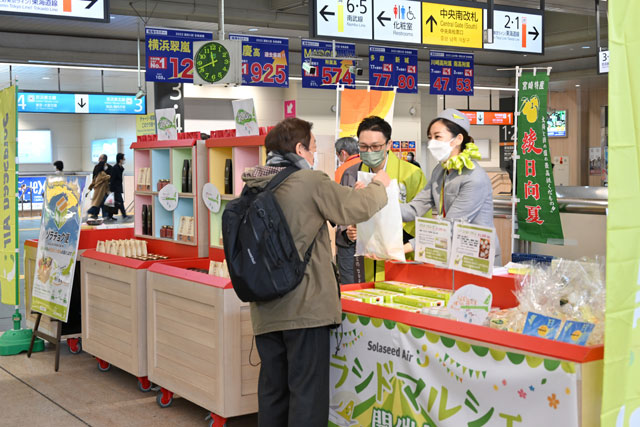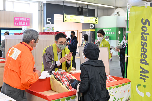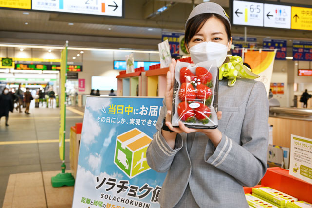 メイン会場はJR川崎駅中央南改札内コンコースで、時間は午前11時30分から午後7時30分まで。県産品は集荷から航空輸送、納品までをソラシドが担い、当日中に届ける高速小口貨物輸送「ソラチョク便」で輸送している。