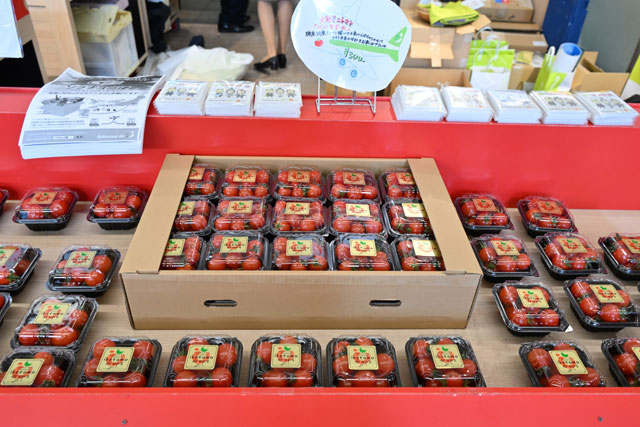 ソラシドマルシェで販売している宮崎県産の完熟ミニトマト「べにすずめ」=22年3月11日 PHOTO: Tadayuki YOSHIKAWA/Aviation Wire