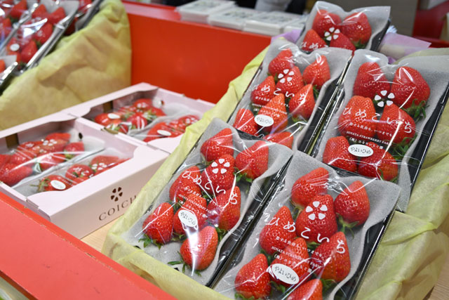 ソラシドマルシェで販売している宮崎県産イチゴ「ひめこいち」=22年3月11日 PHOTO: Tadayuki YOSHIKAWA/Aviation Wire