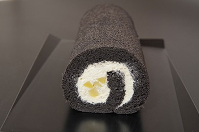 JALの客室乗務員が考案したスイーツ「JAL Sweets Box」第1弾の「茨城県産栗と竹炭のロールケーキ」(同社提供)
