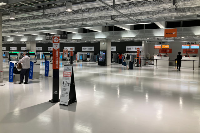 各社共用となった自動チェックイン機や自動手荷物預け機の配置は、従来のアイランド式をリニア式に変更。ジェットスターによると、視認性を向上させると同時に利用者が移動しやすい配置になり、待ち時間を短縮したという。