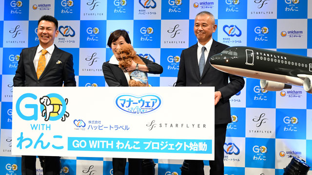同ツアーはユニ・チャーム(8113)が展開する愛犬と外出する時間を広げるプロジェクト「GO WITH わんこプロジェクト」にスターフライヤーが賛同して実現。ツアーの企画と販売はハッピートラベル(福岡市)が手掛ける。