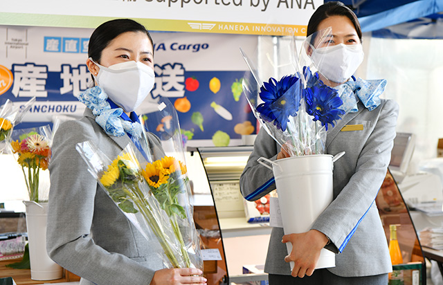 従来の産直空輸で扱う野菜や果物、海産物に加え、新たに生花も取り扱う。航空機輸送を導入することで、