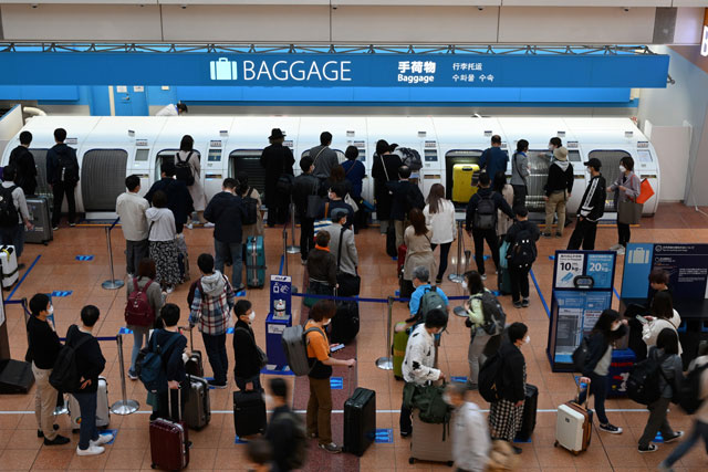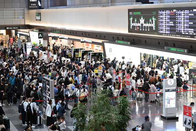 ゴールデンウイーク初日を迎え出発客で混雑する羽田空港第2ターミナル=22年4月29日 PHOTO: Tadayuki YOSHIKAWA/Aviation Wire