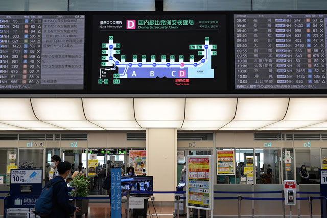 ゴールデンウイーク初日を迎え約2年ぶりに保安検査場Dを開けた羽田空港第2ターミナル=22年4月29日 PHOTO: Tadayuki YOSHIKAWA/Aviation Wire