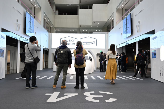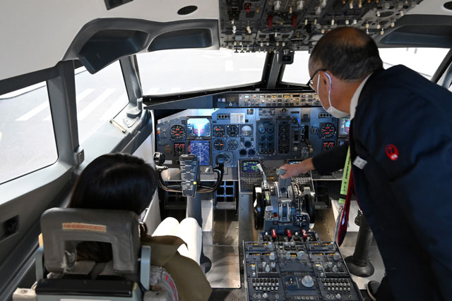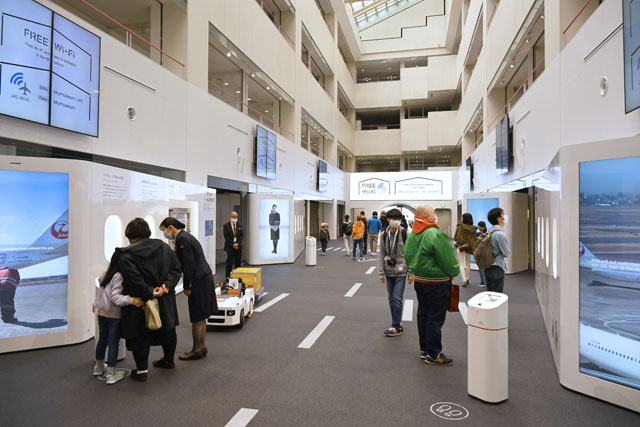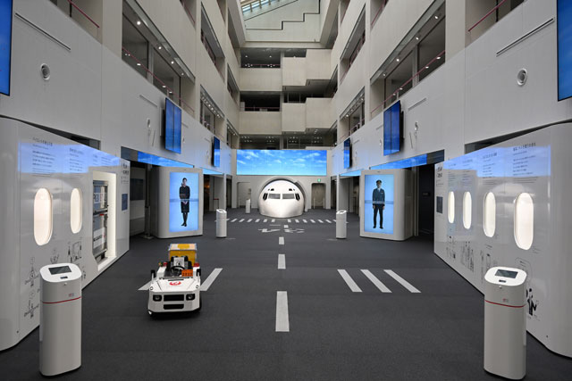 1日に再開した見学ツアーは格納庫見学のほか、2021年に全面リニューアルした展示エリアを巡る。2013年7月以来約8年ぶりの刷新で、大型マルチディスプレイの導入やコンテンツのデジタル化などで展示内容の更新が可能になり、パイロットが実際に使用していたフライトシミュレーターを活用したコックピットや、実機から取り下ろしたビジネスクラスシート、歴代制服などを展示し、懐かしのテレビCMも視聴できる。