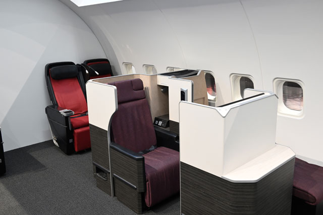 リニューアルオープンしたJALのスカイミュージアムの客室モックアップ=22年5月1日 PHOTO: Tadayuki YOSHIKAWA/Aviation Wire