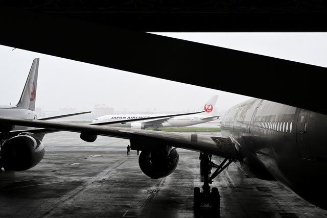 JALの格納庫に駐機中の787-8 JA878Jなどの旅客機=22年5月1日 PHOTO: Tadayuki YOSHIKAWA/Aviation Wire