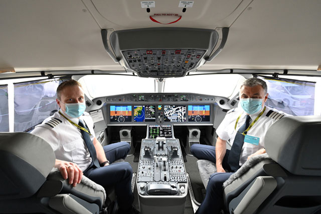 羽田空港で公開されたエア・バルティックのA220-300のコックピット=22年5月9日 PHOTO: Tadayuki YOSHIKAWA/Aviation Wire