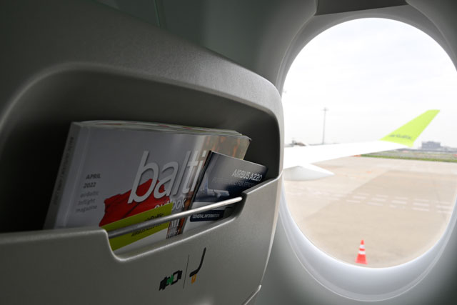 羽田空港で公開されたエア・バルティックのA220-300の右側席=22年5月9日 PHOTO: Tadayuki YOSHIKAWA/Aviation Wire