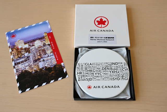 AC6便の乗客に手渡された記念品のコースターとポストカード=22年6月4日 PHOTO: Tadayuki YOSHIKAWA/Aviation Wire