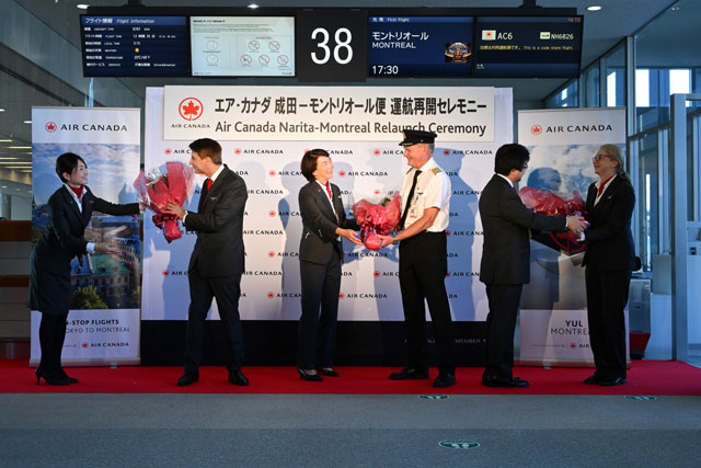 エア・カナダ(ACA/AC)は6月4日、モントリオール-成田線を週2往復で2年2カ月ぶりに再開した。成田空港では記念式典が開かれ、モントリオール行きAC6便の乗客には記念品が手渡された。9月7日からは週5往復に増便し、秋の観光需要などを取り込む。既存のトロント線とバンクーバー線を合わせ、同社の成田発着便は3路線になった。