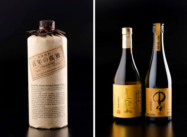 JALが国際線ファーストで提供する「百年の孤独」(左)、ビジネスで用意する「富乃宝山」(中央)と「中々」(同社資料から)