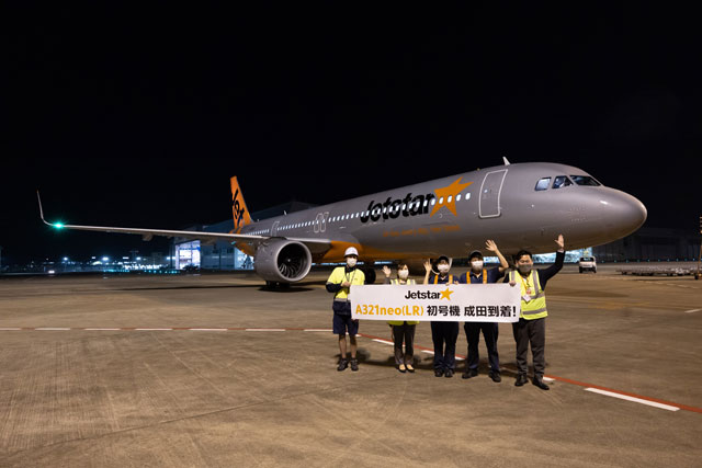 A321LRの初号機は現地時間6月3日に引き渡され、フェリーフライトのGK1便としてハンブルクを10日午前9時17分に出発。11日午前9時11分にアブダビ、12日午後2時9分にハノイを出発し、成田には12日午後9時14分にA滑走路(RWY34L)に着陸。22分に702番スポットへ到着した。ハンブルクから成田まではジェットスター・ジャパンのパイロットが操縦した。