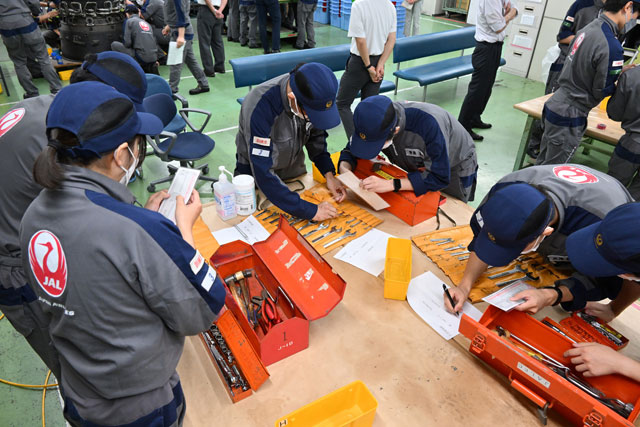 技能五輪の「ツールチェック」に挑むJALECの整備士たち=22年7月27日 PHOTO: Tadayuki YOSHIKAWA/Aviation Wire