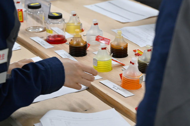 出場した中尾好宏さんは「1カ月前に実習でやったものなどは、しばらくやっていないのと時間制限があったので結構難しかったです」と話す。今回は60人のうち12人が女性で、須藤彩良さんは「フルードはたくさん並んでいると見分けがつかなかったり、粘度指数で言われてもピンとこないのは、まだ経験不足なのかなと思いました」といい、「間違い探しは、見て違和感に気づくことが大事だと思いました」と、経験を積むことの大切さを実感していた。