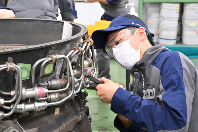パイロット訓練生の石井亮多さんは、大学で素材などを研究しており、整備部門に初期配属された5人は全員が理系出身だという。「大学で習った知識が生かせるものもありますが、機具の取り扱いのように一切やったことがないものは、友だちに助けてもらいました」とチームワークの大切さに触れた。須藤さんも「一つひとつが複雑なシステムもあり、自分一人の知識では追いつかないところを仲間に聞いたり、一人では危ない作業もあるのでチームワークは大事です」と指摘していた。