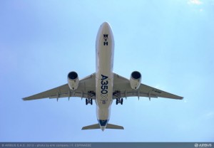 初飛行を行ったエアバスA350=6月14日 PHOTO: F. Espinasse, em company/Airbus