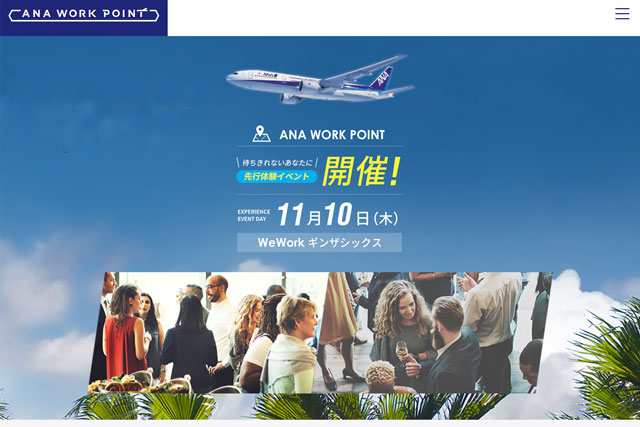 ANA WORK POINT開始を記念し、11月と12月にWeWorkの施設でイベントを開催。11月10日午後6時からWeWork ギンザシックスでANAの機内食などを手掛けるANAケータリングサービス(ANAC)とイベントを開く。ANAオリジナルカクテルや就航地にちなんだカクテルをバーテンダーが提供するという。
