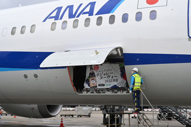 ・ボジョレー・ヌーボー初荷、羽田に3トン着 4年ぶりANA便で(21年10月23日)