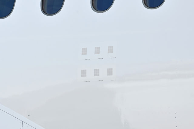 機体表面にサメの肌のようなざらざらとした「リブレット(鮫肌)加工」と呼ばれる特殊加工を施すことで、飛行中の空気摩擦抵抗を低減でき、結果的にCO2排出量や燃費改善につなげられるという。