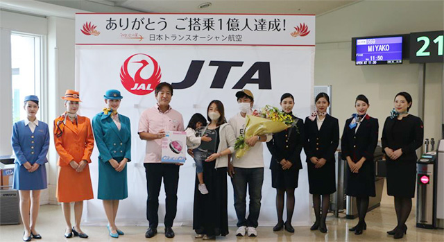 日本トランスオーシャン航空(JTA/NU)は11月15日、累計の搭乗者数が1億人に到達した。1967年の就航以来、55年で到達した。