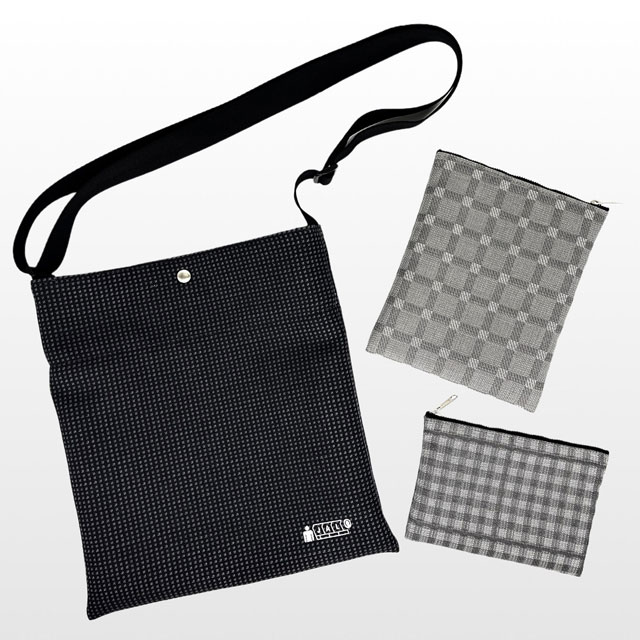 ショルダーバッグには、「ジャンボ」の愛称で親しまれるボーイング747-400型機や、777-200ER/300ER型機のビジネスクラス用にデザインされたシート生地を使用。また、付属の取り外しできるポーチには、777-200ER/300ERのプレミアムエコノミークラス用の生地を使う。