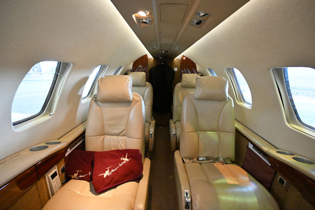 フジビジネスジェットのセスナ サイテーションCJ2+の客室=22年9月 PHOTO: Tadayuki YOSHIKAWA/Aviation Wire