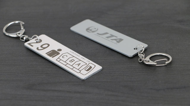 JTAの整備士が廃材から手作りした座席番号案内のキーホルダー(同社提供)