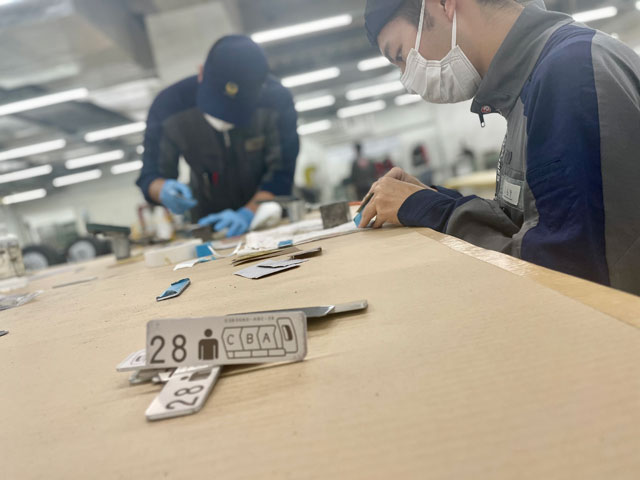 廃材からアップサイクル品を手作りするJTAの整備士(同社提供)