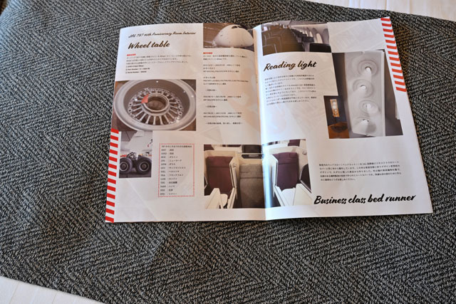 東京ベイ東急ホテルのコンセプトルーム「JAL 787 10th Anniversary Room」に用意された宿泊者限定の解説冊子=22年12月2日 PHOTO: Tadayuki YOSHIKAWA/Aviation Wire
