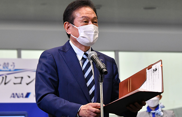 ANAの空港接客コンテストでコメントする井上社長=22年12月8日 PHOTO: Yusuke KOHASE/Aviation Wire