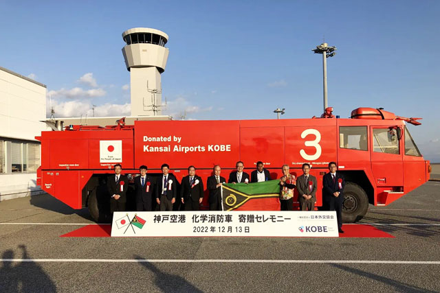 神戸空港を運営する関西エアポート神戸は12月13日、退役した化学消防車1台を南太平洋のバヌアツ共和国にあるタンナ空港へ寄贈し、出発式を開いた。