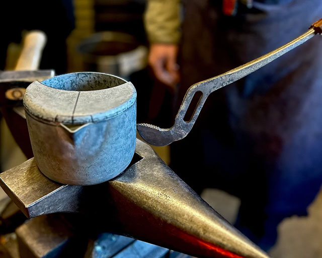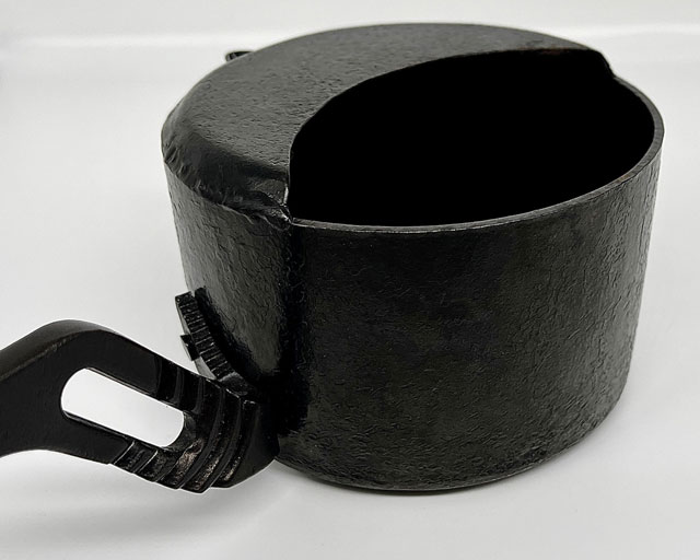 価格は11万円で、6個限定の受注生産。コッヘルの部分は、金属造形作家の小林淳一郎氏が熱間鍛造技法で手作りし、取手となるウォーターポンププライヤーを接合して、漆焼付塗装で仕上げた。すべて手作りのため、製作期間は2-3カ月程度を予定している。