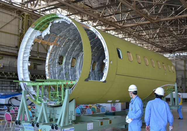・三菱航空機、MRJの胴体を初公開 10月から最終組立へ