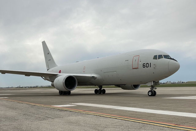 トルコへ支援物資を運ぶ空自のKC-767(防衛省提供)