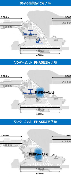 NAAの田村明比古社長は「段階的な整備が1つの案として考えられる。空港は閉鎖して建設するわけにはいかない」と説明。通常の運用に支障がないように整備していくと述べた。
