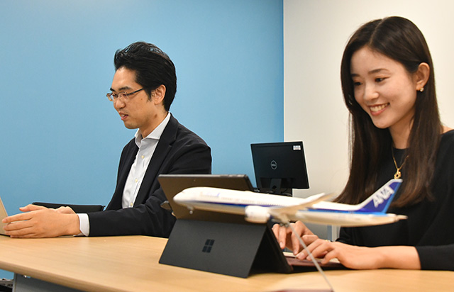 グローバルスタッフ職の面接を進めるANAの社員=23年6月1日 PHOTO: Yusuke KOHASE/Aviation Wire