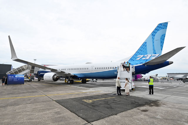 ・最大の737 MAX「737-10」海外初公開 ファンボロー航空ショーで試験機お披露目、777Xも並ぶ(22年7月17日)
