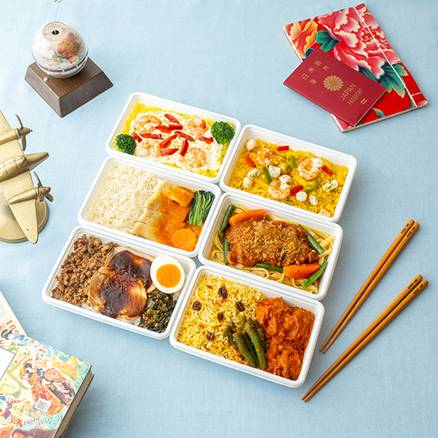 メニューはフランスの家庭料理「コック・オー・ヴァン」、柚子胡椒をアクセントとしたクリームソースを使ったドリア「エビの柚子胡椒クリームソース」、スペインの王道料理「パエリア」、シンガポールの屋台料理「シンガポールチキンライス」、台湾大衆料理の「叉焼肉飯」、インド風炊き込みごはん「チキンビリヤニ」の6種類。冷凍状態で発送する。