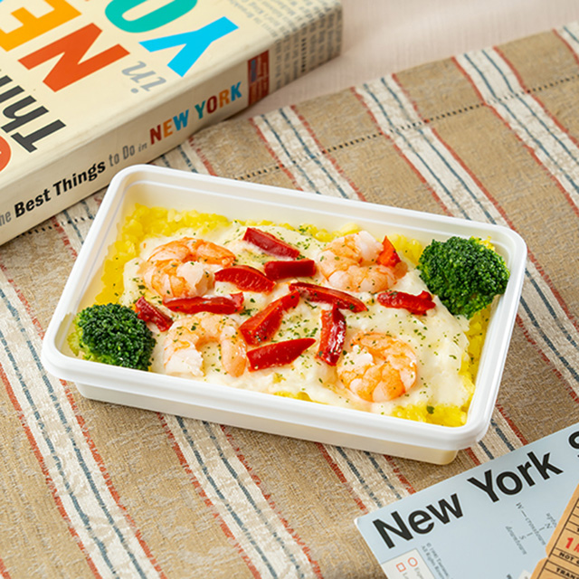 空ビルが通販するコスモ企業の「世界の機内食」新メニュー「エビの柚子胡椒クリームソース」(日本空港ビル提供)