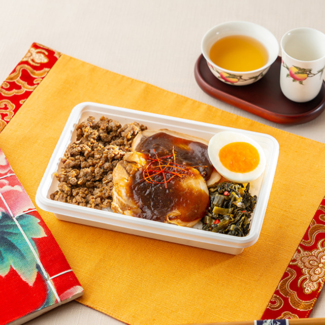 空ビルが通販するコスモ企業の「世界の機内食」新メニュー「叉焼肉飯」(日本空港ビル提供)