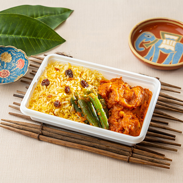 空ビルが通販するコスモ企業の「世界の機内食」新メニュー「チキンビリヤニ」(日本空港ビル提供)
