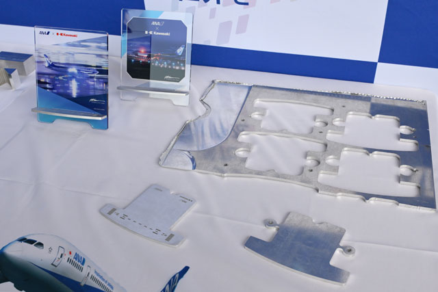 両社によると、航空機の素材は特許や企業秘密が多いため、商品を考えても実現が難しいものや、採用を断念した素材もあったという。今回は川重の協力会社のうち、中部地区にある天龍エアロコンポーネントとナベヤ製作所が製造に携わった。